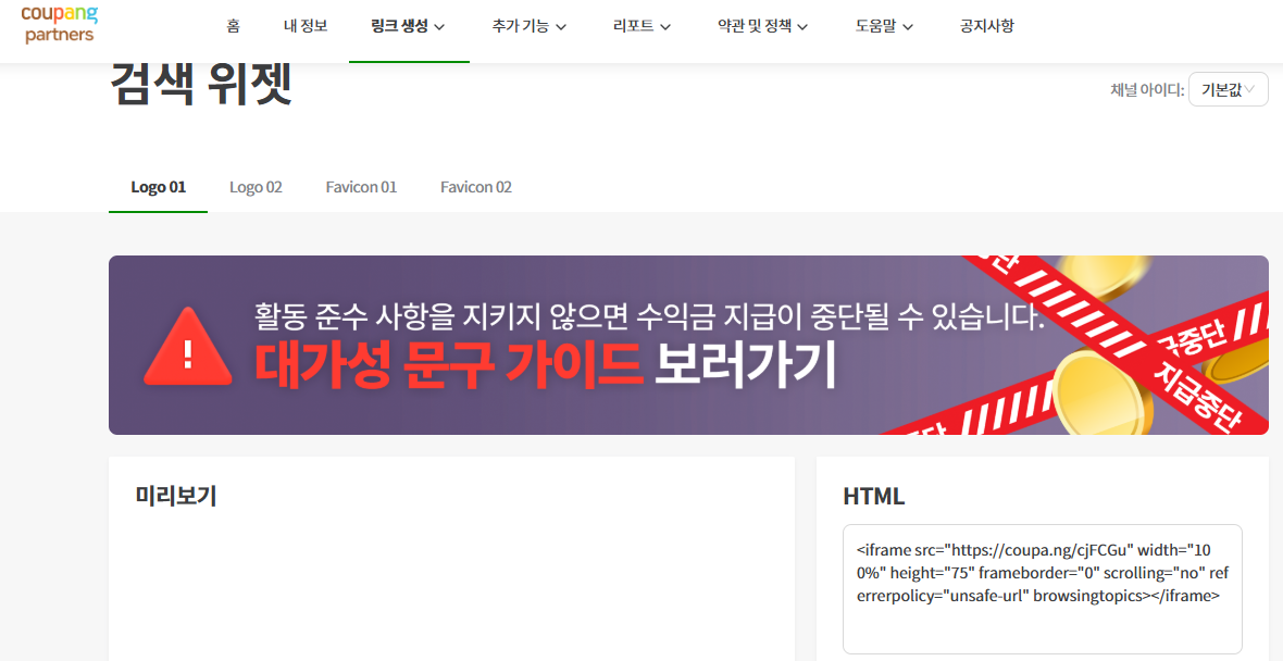 쿠팡의 HTML 광고 배너를 찾기가 어렵다면 하단의 HTML 정보 소스를 그대로 사용하셔도 되요.