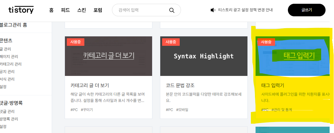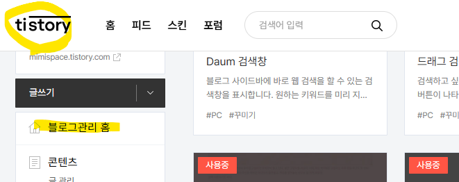티스토리 메인 화면으로 돌아와보면 사이트에 적용된 것이 보일 거예요
