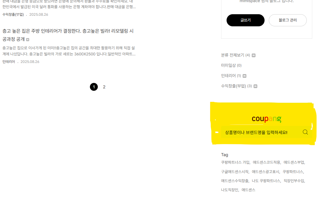 3. 자! 이제 티스토리에 쿠팡 배너 삽입으로 제대로 승인절차 한방에 해결해 볼까요?